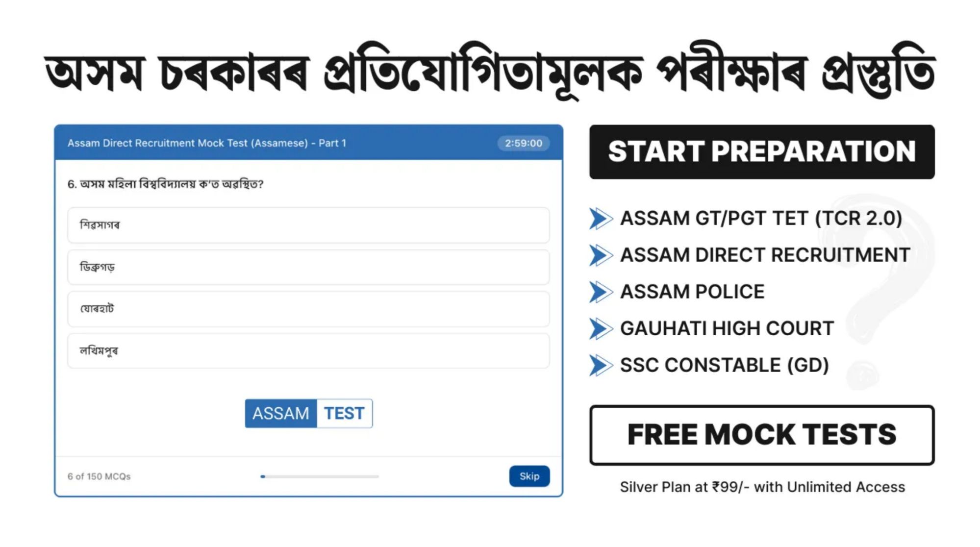 ইয়াত অসম চৰকাৰী পৰীক্ষাৰ বাবে Lucent (অসমীয়া মাধ্যম), Assam Police (Constable, Driver, SI), Forest Guard আৰু Current Affairs 2025-26ৰ ই-বুক উপলব্ধ।